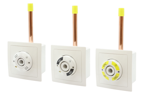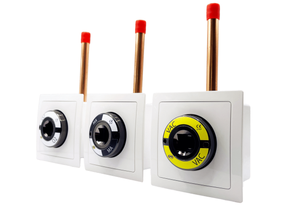 CPX DIN Gas Outlets are available for wall mounting (Flush or Surface), Bed Head trunking, and Pendant mounting.